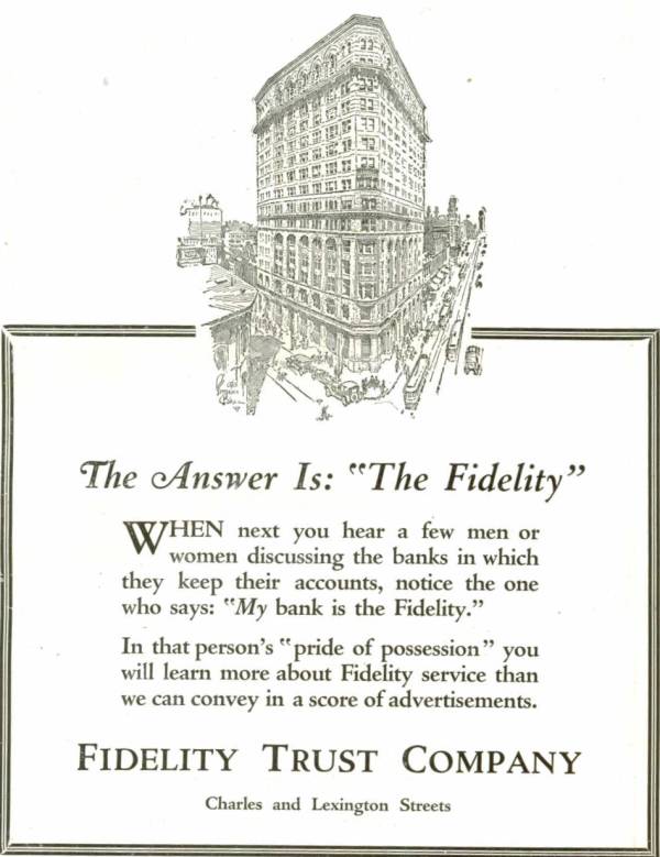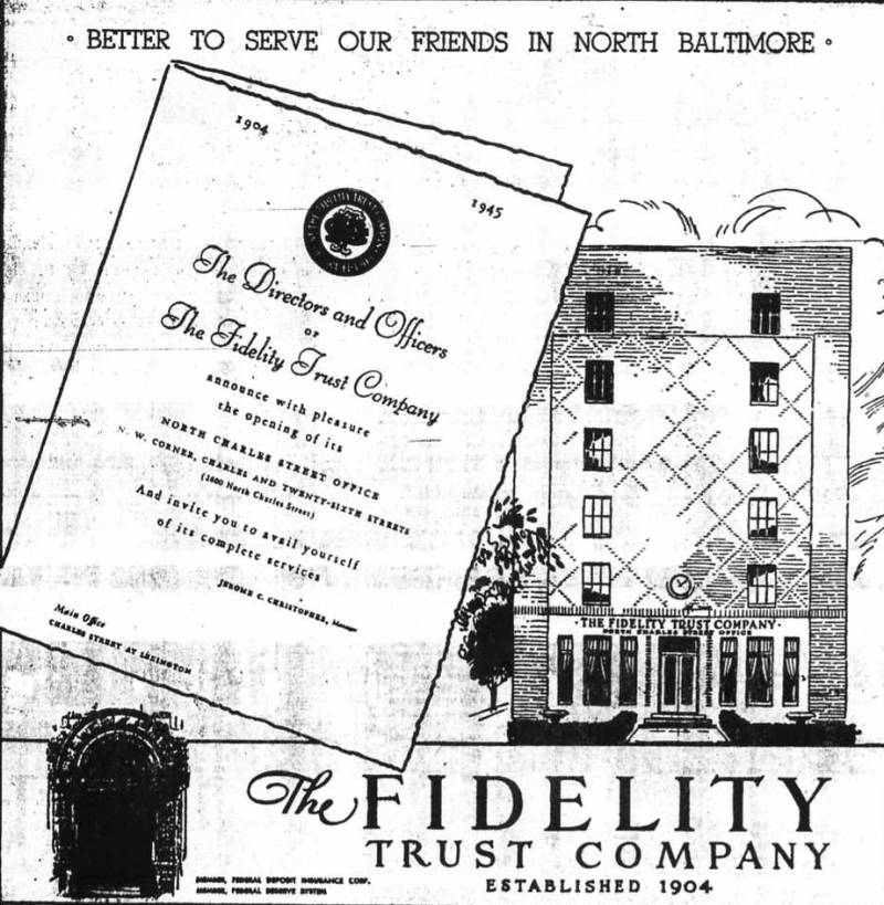 downtown Maryland Trust Bank branches. Below, ads for the National