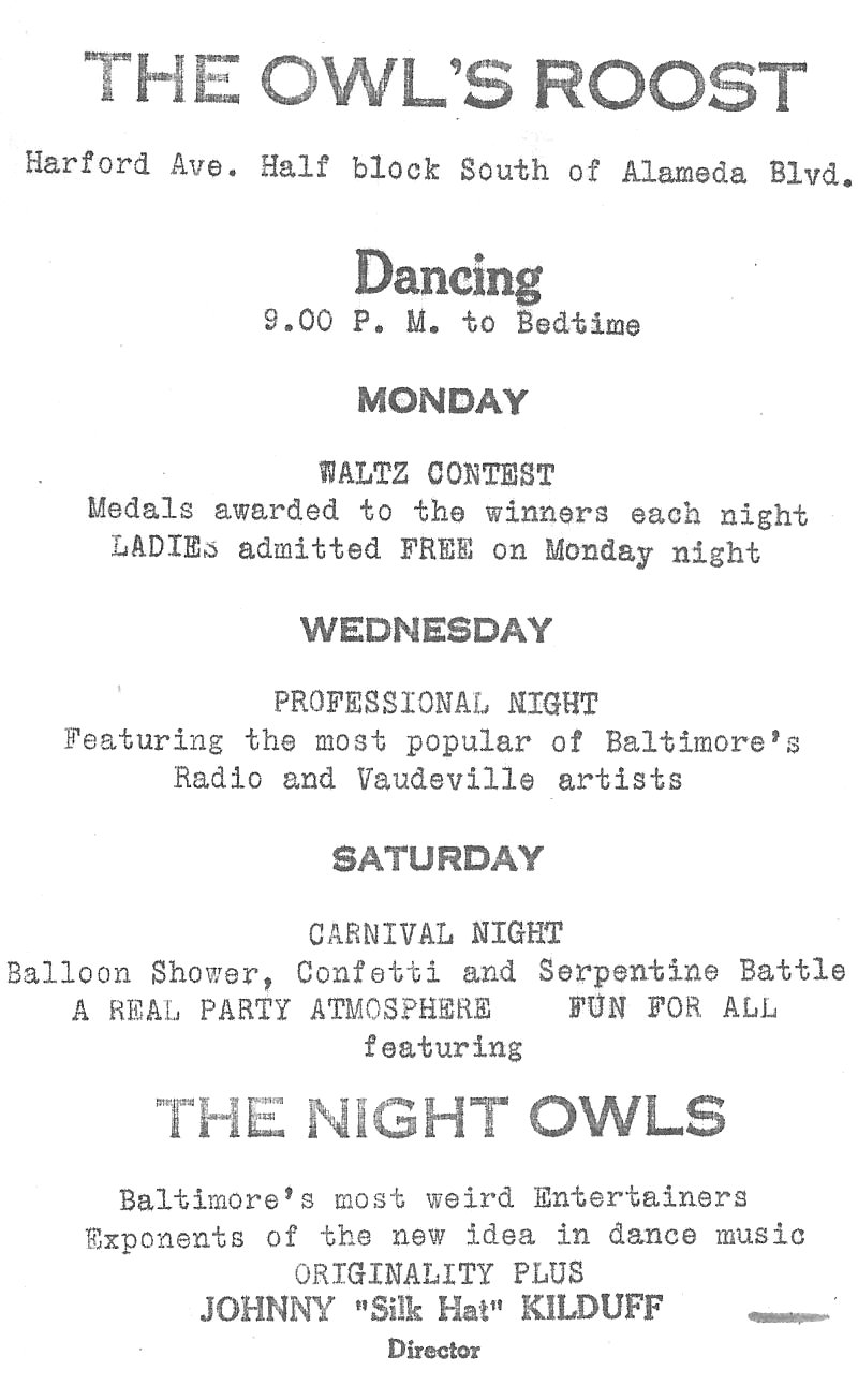 members over the years. Names the band used included : Kilduff's Red Devils Kilduff Gibney Red Devils Oriole Novelty Orchestra The Night Owls Kilduff's Melody Boys |