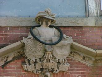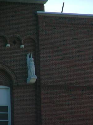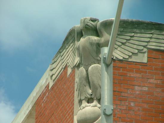 | Above, The eagle that had been on the Chesapeake Cadillac building for years was saved and added to the facade of the supermarket that went up on the site. Not quite as lucky, some of the stone work , on a smaller side building , of the West Baltimore General Hospital on Rayner Street , which has since been torn down...... |