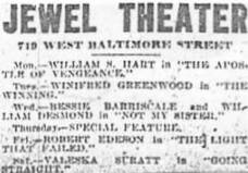 - 2303 Jefferson Street Listed under Moving Pictures - 1914 Baltimore Directory ....................................................... |
