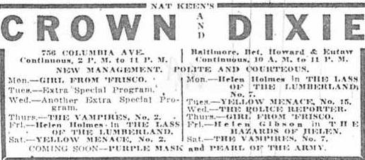 - 1110 South Charles Street Listed under Moving Pictures - 1910 -1912-1914-1917 Baltimore Directory |
