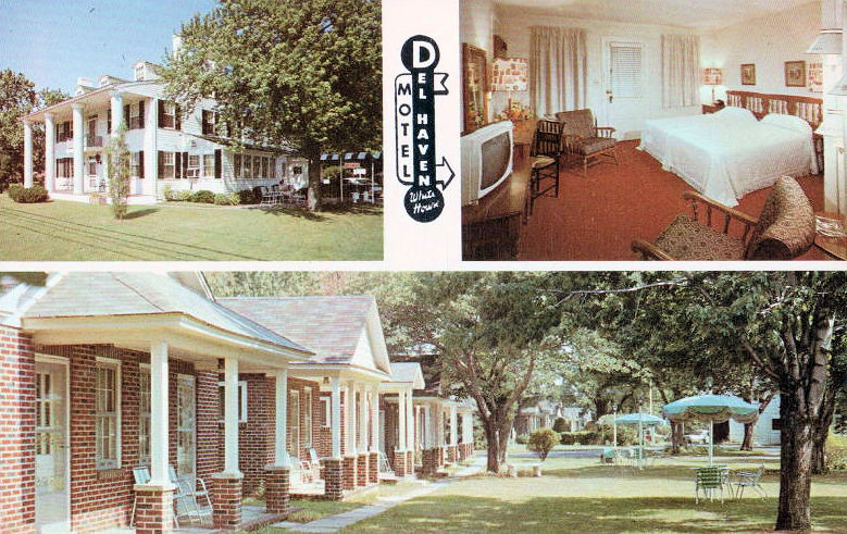 Maryland - U.S. Route 1 Del Haven Cottages "Del Haven White House Cottages, 7 Miles North of Washington on Route 1, 40 Brick Cottages, Each heated with tile baths, , Beautycrest mattresses, Large Shady Lawn, Home cooked meals, in the ""Old White House"" , where George Washington Dined". ( Description 1949 ) Later Postcards told of Radios & Television . .... .................................................................... There was also a Del Haven Motel further north in Belair, Maryland. ..................................... ![]() |