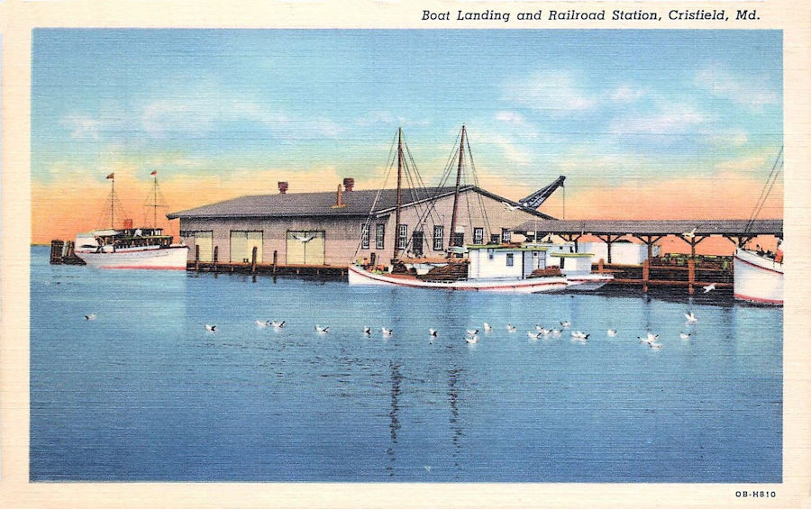 | Crisfield - N.Y.P&N Railroad (New York. Philadelphia and Newark Railroad) Passenger Station : Main & Fourth Street Razed - Empty lot ![]() Below, Postcard of the old Freight Station On Little Annemessex River ![]() |